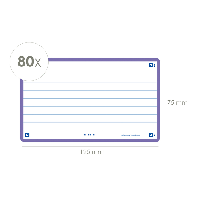Eigenschappen "Flashcard Oxford 2.0 75x125mm 80 vel 250gr lijn paars"
