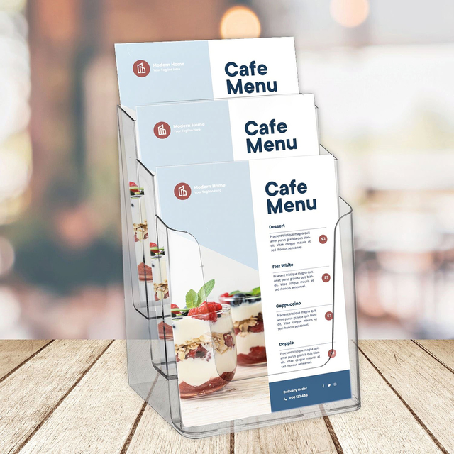 * Folderbakje van glashelder, recyclebaar polystyreen. * Ook geschikt voor wandmontage. * In verschillende formaten verkrijgbaar.