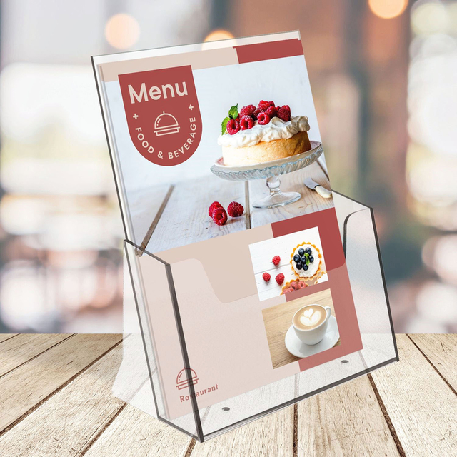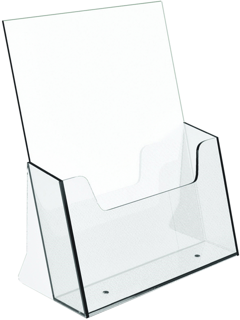 * Folderbakje voor een glasheldere presentatie van folders, catalogi en prijskaarten. * Stevig en glashelder hoogwaardig kunststof. * Capaciteit 35mm. * In verschillende formaten verkrijgbaar.