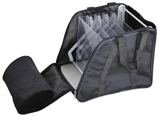 * Folderstandaard enkelzijdig opvouwbaar geproduceerd van aluminium. * Met 5 transparante kunststof folderhouders. * Folderhouders voor A4-formaat. * Bodemplaat van 18mm dik MDF. * Inclusief handige draagtas. * Geschikt voor gebruik op o.a. beurzen, productpresentaties.