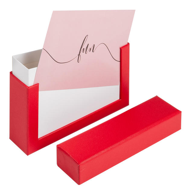 Leuke fotodoos in rood voor 100 foto's in het formaat tot 10 x 15 cm. De doos heeft een hoogwaardige papieren omslag en een uitsparing voor een persoonlijke foto in het formaat 10 x 15 cm. Deze doos is verkrijgbaar in vele andere kleuren.