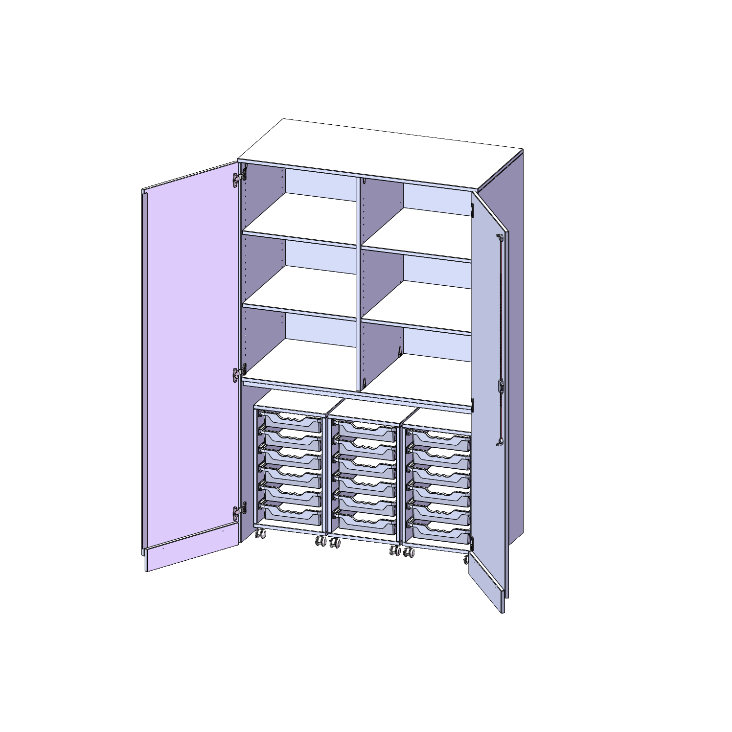 De evo180 kasten en planken in verschillende hoogtes en breedtes vormen een kernonderdeel van ons evo180 wandkastenprogramma. De achterwand is ontworpen als zichtbare achterwand, dus alle evo180 losse kasten of bovenkasten zijn ook geschikt als room dividers. Alle kasten zijn gemaakt van gemelamineerde E1-fijnspaanplaat, die FSC-gecertificeerd en formaldehydevrij is. We gebruiken bijzonder robuuste 2 mm dikke ABS-randen, die bij hoge temperaturen stevig worden verlijmd. Selecteer het gewenste decor uit ons decorpalet. De legborden zijn verstelbaar in stappen van 32 mm. Onze hoogwaardige plankdragers hebben een "uittrekstop" die voorkomt dat planken met inhoud uit de plank of kast glijden. Dankzij de 270° openende scharnieren kunnen de deuren tegen de opbouw geplaatst worden. Ze kunnen worden afgesloten met een slot. Op de deuren zit een stoflip. Wij bieden onze garagekasten in verschillende uitvoeringen aan. De kasten hebben geen bodem - binnenin bevinden zich praktische verrijdbare containers of droogtrolleys die je eenvoudig uit de kast kunt rollen en gebruiken waar je ze nodig hebt. Na de les leg je hem gewoon terug in de kast en alles is in een mum van tijd opgeruimd. Stel je gewenste kledingkast samen door je keuze te maken uit de aangeboden varianten.