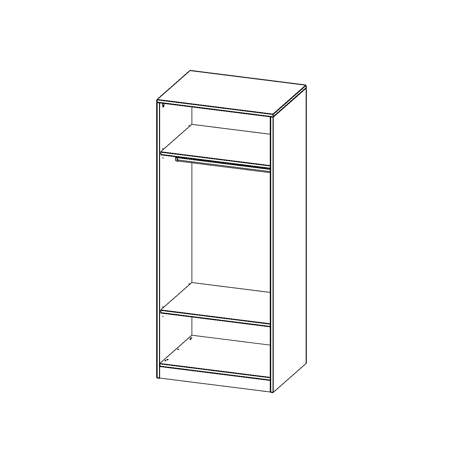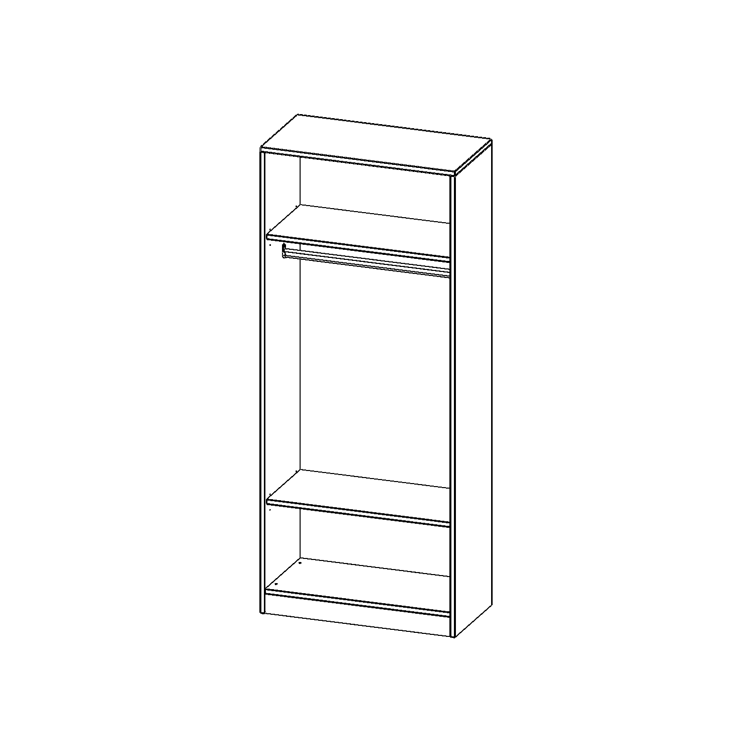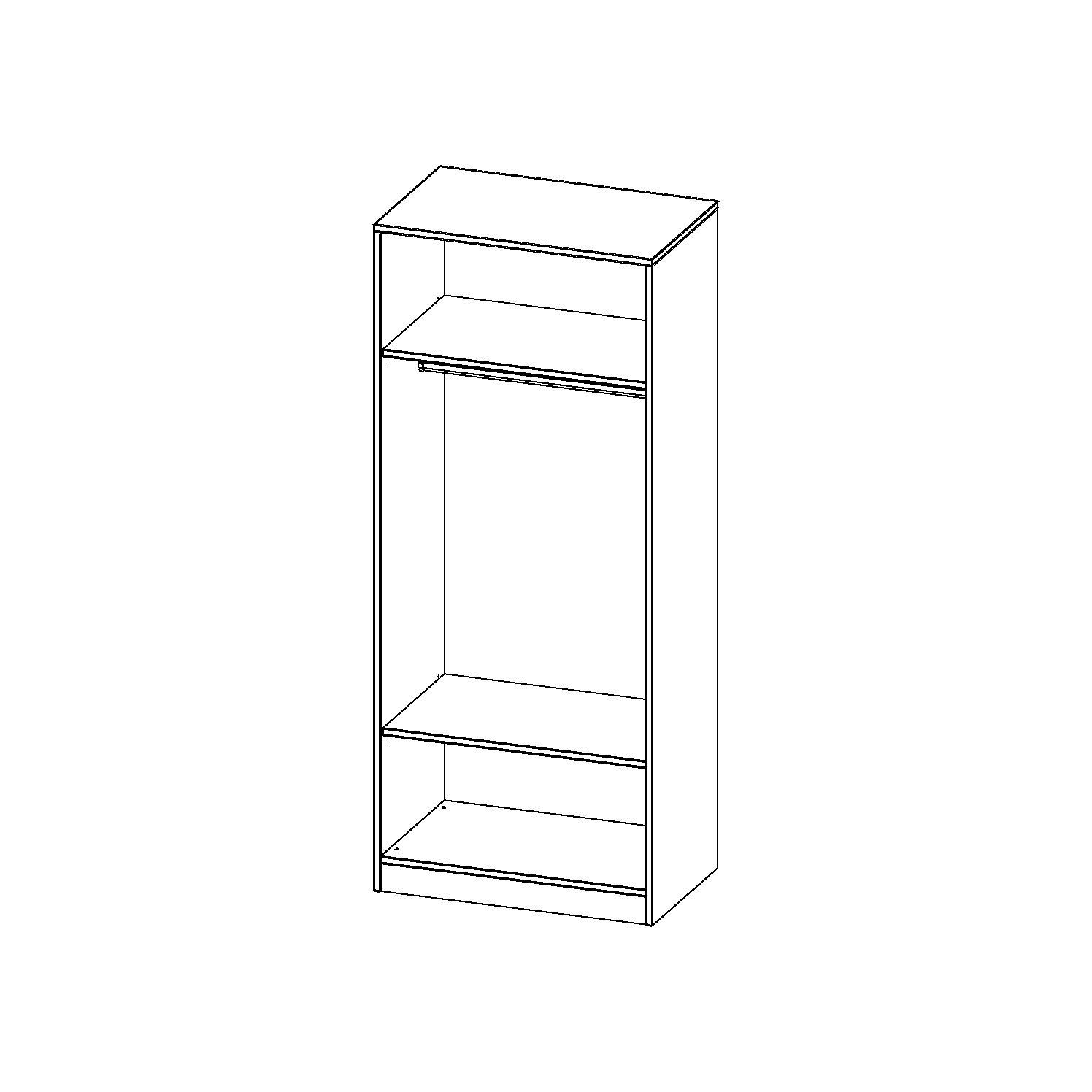 De evo180 kledingkastplanken in verschillende hoogtes en breedtes vormen een kernonderdeel van ons evo180 wandkastenprogramma. De achterwand is ontworpen als zichtbare achterwand, dus alle evo180 losse kasten of bovenkasten zijn ook geschikt als room dividers. De plank heeft 2 planken (hoeden- en schoenenrek) en een kledingroede. Alle kledingkastplanken zijn gemaakt van gemelamineerde E1-fijnspaanplaat, die FSC-gecertificeerd en formaldehydevrij is. We gebruiken bijzonder robuuste 2 mm dikke ABS-randen, die bij hoge temperaturen stevig worden verlijmd. Selecteer het gewenste decor uit ons decorpalet. De legborden zijn verstelbaar in stappen van 32 mm. Onze hoogwaardige plankdragers hebben een "uittrekstop" die voorkomt dat planken met inhoud uit de plank of kast glijden. Configureer uw gewenste garderoberek door uw keuze te maken uit de aangeboden varianten.