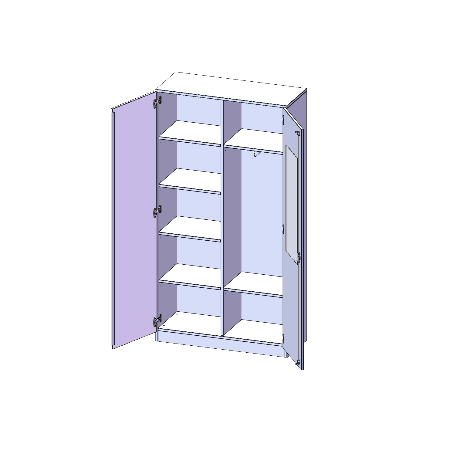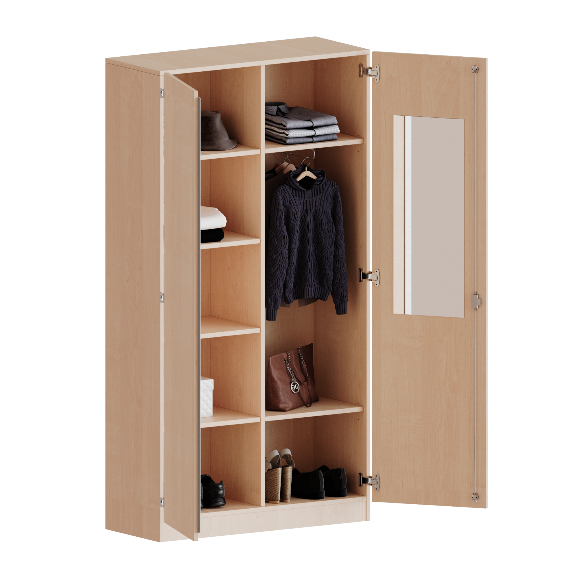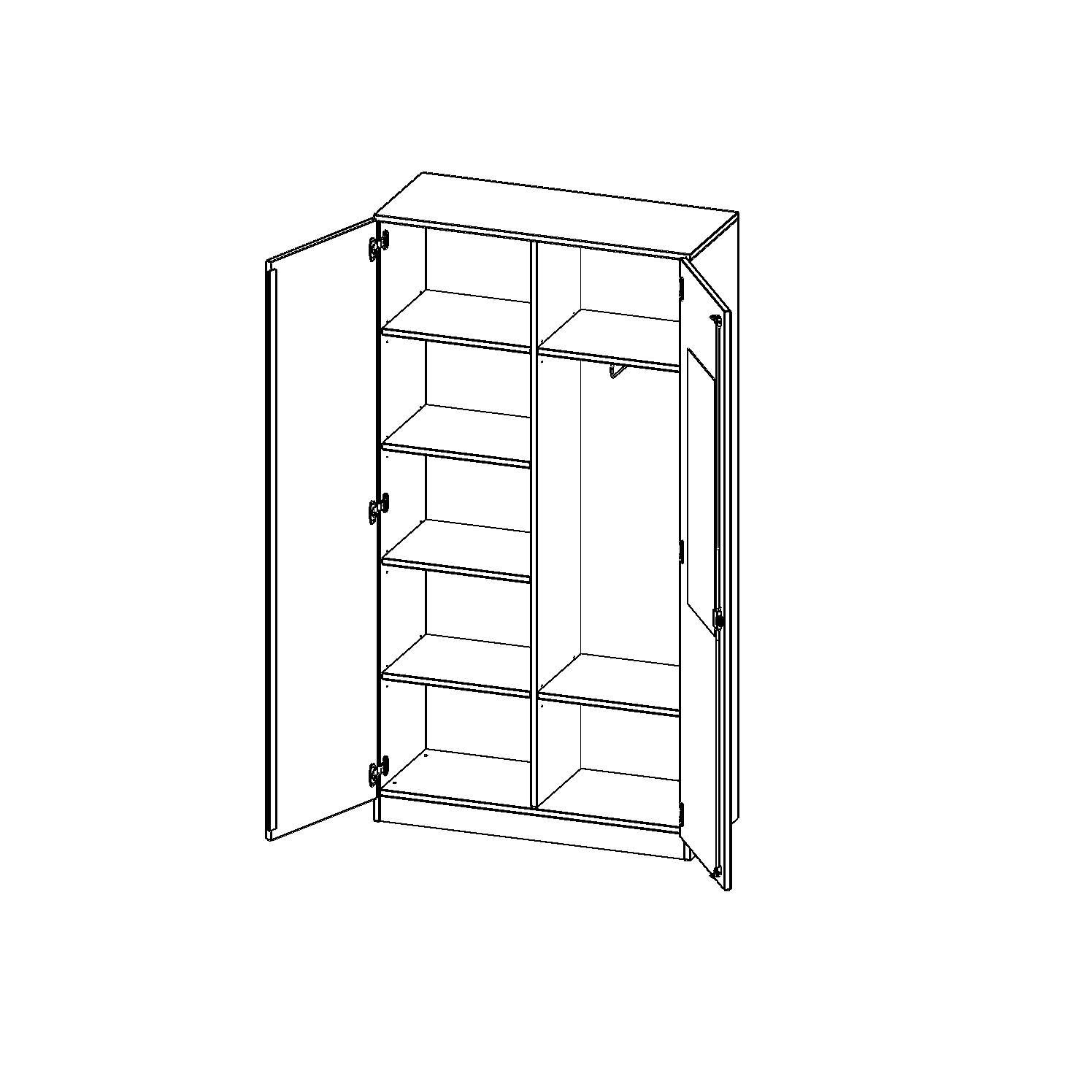 Garderobekast met spiegel en kledingroede, 5 ordnerhoogtes - serie evo180