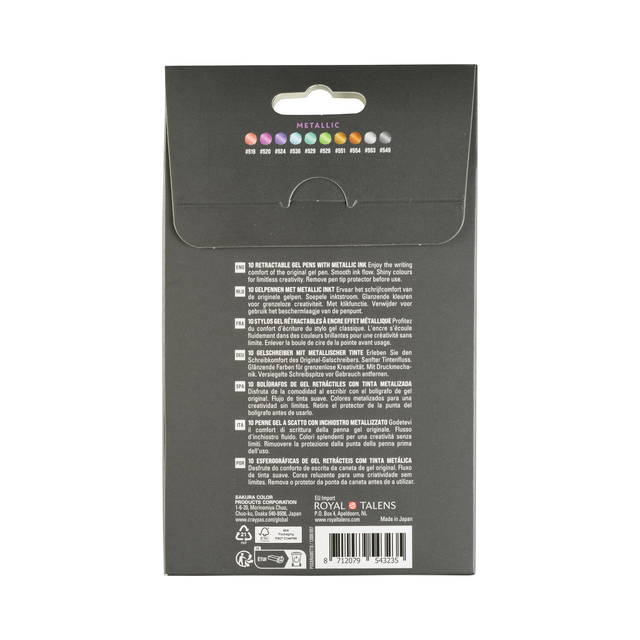 Eigenschappen "Gelschrijver Sakura Gelly Roll Metallic 08 klikfunctie set à 10 kleuren"