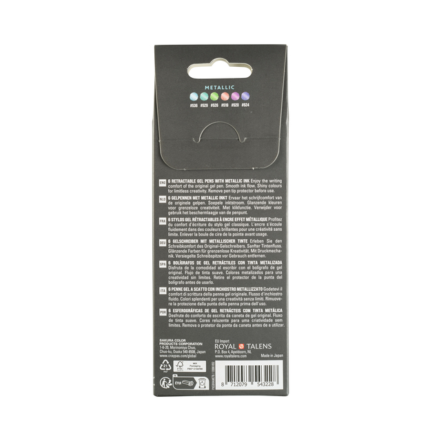 Gelschrijver Sakura Gelly Roll Metallic 08 klikfunctie set à 6 kleuren