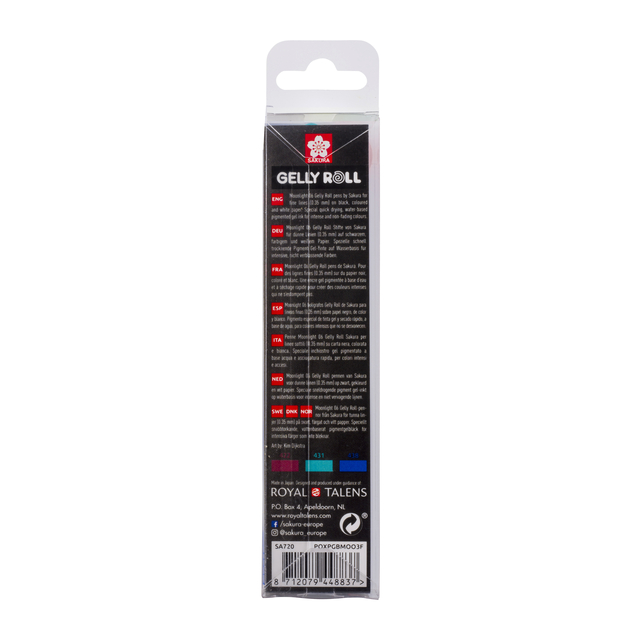 Eigenschappen "Gelschrijver Sakura Gelly Roll Moonlight 06 galaxy set à 3 kleuren"