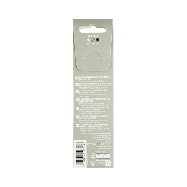 Eigenschappen "Gelschrijver Sakura Gelly Roll Special 08 klikfunctie set à 3 kleuren zilver"
