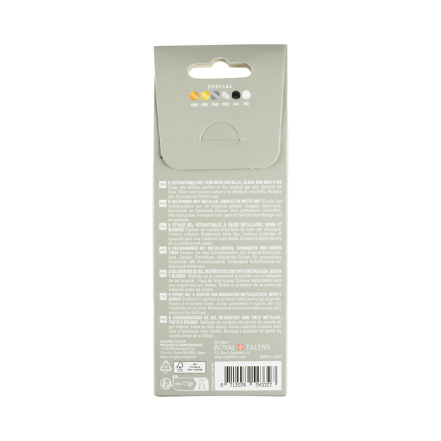 Eigenschappen "Gelschrijver Sakura Gelly Roll Special 08 klikfunctie set à 6 kleuren"