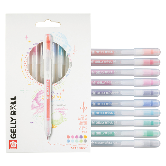 Gelschrijver Sakura Gelly Roll Stardust 08 klikfunctie set à 10 kleuren