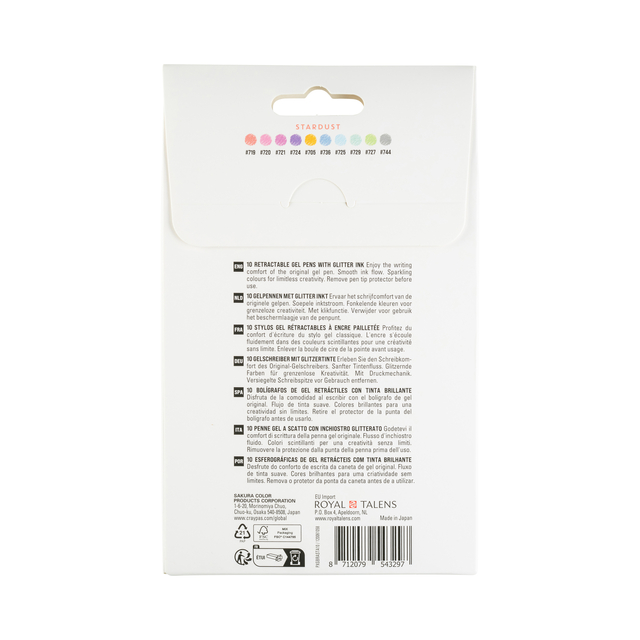 Eigenschappen "Gelschrijver Sakura Gelly Roll Stardust 08 klikfunctie set à 10 kleuren"