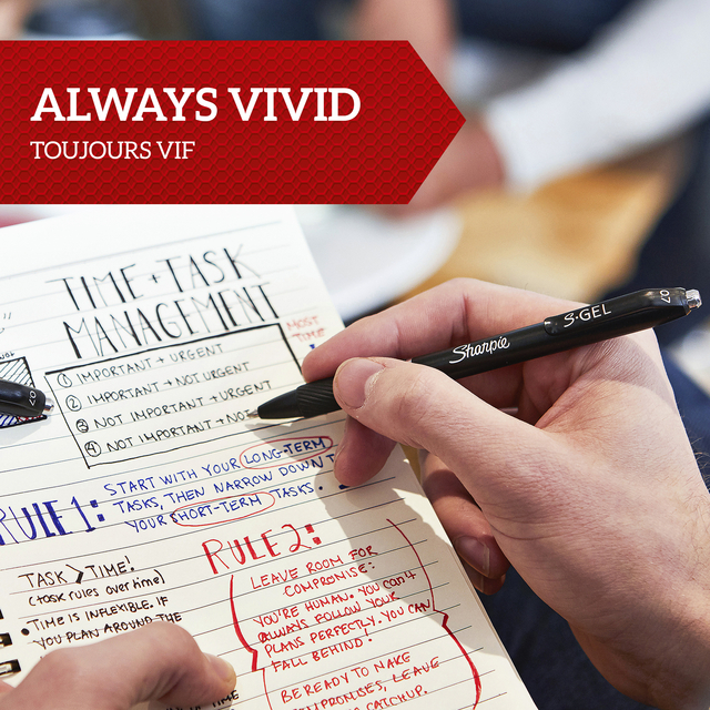 * Ervaar een hoogwaardige gelpen met de Sharpie S-Gel. * Deze Sharpie-pen vlekt niet, vloeit niet uit en biedt een uitzonderlijke schrijfervaring. * Deze gel-inktpen biedt krachtige, opvallende kleuren waarmee u uw schrijven opfleurt. * De voorgevormde rubberen grip zorgt voor een comfortabele schrijfervaring tijdens elke schrijftaak. * Tot slot geven het strakke ontwerp en de matte afwerking de pen een stijlvolle, professionele uitstraling. * De Sharpie S-Gel is verkrijgbaar in verschillende gel-inktkleuren, en biedt een soepele schrijfervaring thuis, op school of op kantoor. * Schrijfkleur: zwart, rood, blauw, groen en paars.