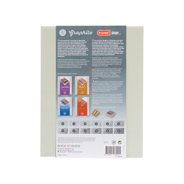 Grafietpotlood Bruynzeel Design met luxe bewaardoos set à 12 hardheden grijs