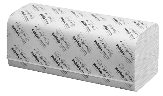 * PT3 handdoeken. * Gevouwen papieren Handdoekken in Comfort kwaliteit. * Helder wit recycled papier. * 2-laags. * C-Vouw. * 24 pakjes van 128 stuks. * Satino navullingen. * Met EU Ecolabel. * Afmeting bij gevouwen (b x l): 250x110mm. * Afmeting bij ongevouwen (b x l): 250x320mm.