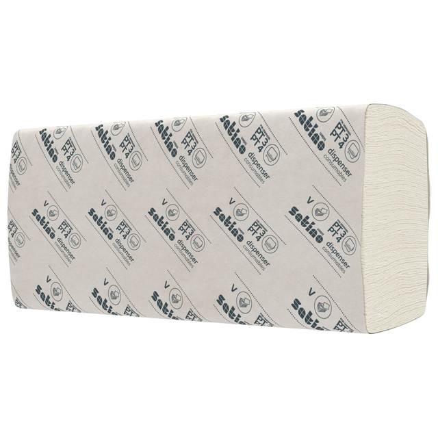* Papieren v-vouw handdoeken van Satino Smart zijn gemaakt van 100% gerecycled papier * Witte 2-laags handdoeken geschikt voor onderandere de Satino PT3 en PT4 dispensers * Voorzien van het Europees Ecolabel en Blauwe Engel. * 20 pakken a 200 vel. * Afmeting bij gevouwen (b x l): 240x115mm. * Afmeting bij ongevouwen (b x l): 240x230mm.