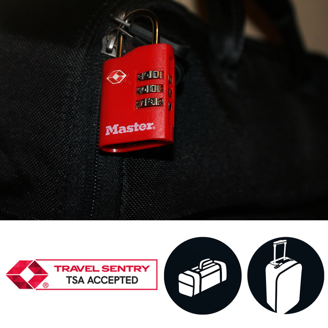 * Het TSA-goedgekeurde bagagehangslot met instelbare combinatie Master Lock nr. 4686EURT heeft een 30 mm breed zinken huis voor duurzaamheid. De beugel heeft een diameter van 3 mm, is 20 mm lang en gemaakt van staal, wat meer stevigheid biedt. * Transportation Security Administration (TSA)-screeners kunnen tassen die zijn afgesloten met een TSA-goedgekeurd slot openen, inspecteren en opnieuw afsluiten. * Sluit uw gecontroleerde bagage af met het slot dat TSA-screeners niet zullen openknippen! * De beperkte levenslange garantie biedt gemoedsrust afkomstig van een merk dat u kunt vertrouwen. 2 hangsloten 30 mm - zinken huis - stalen beugel 20 mm, diam. 3 mm - instelbare 3-cijferige combinatie - 4 kleuren: paars, blauw, rood, zwart. * Uitlevering in willekeurige kleur.