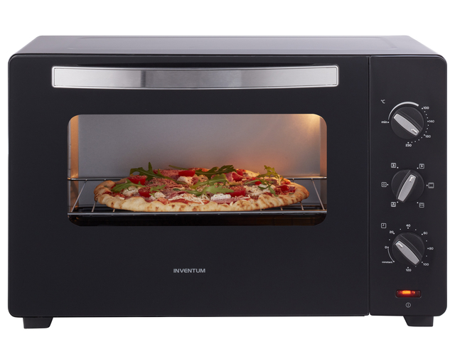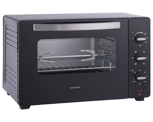 * De Inventum vrijstaande heteluchtoven OV457B heeft een netto inhoud van 45 liter. Dit model heeft 6 ovenprogramma's. Door de hetelucht is de temperatuur gelijkmatig verdeeld. Opwarmen gaat extra snel door de 4 verwarmingselelementen. Daarnaast is de oven voorzien van een timer. Het apparaat wordt standaard geleverd met een bakplaat, ovenrooster, kruimelplaat en een draaispit. * Deze vrijstaande oven wordt geleverd met een handig draaispit met bijbehorende klemmen en een handgreep. Met de handgreep kun je het draaispit veilig uit de hete oven halen. Het voordeel van een draaispit is dat je gerecht gelijkmatig gaar wordt. Het is ideaal voor kip of rollade. * Schoonmaken van de oven is heel eenvoudig. Na ieder gebruik, als de oven nog lauw is, veeg je de oven schoon met zachte vochtige doek met een beetje afwasmiddel. Het rooster, de bak- en kruimelplaat, het draaispit en de handgrepen kunnen in de vaatwasmachine.