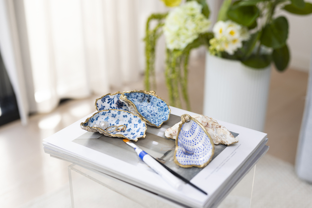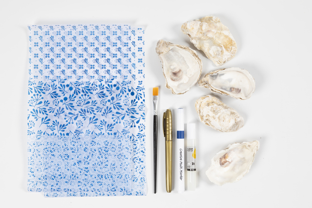 Met Creativity in a Box kunt u de schatten van de zee omtoveren in mooie en unieke decoupageschalen – ideaal om sieraden en andere kleine spulletjes in op te bergen. De set bevat materialen voor vijf gedecoreerde oesters en alle instructies die u nodig hebt. Haal het zomerplezier van de kust in huis. Met onze Creativity in a Box maakt u eenvoudig de meest onweerstaanbare oesterschelpen met decoupagepapier. Versier de schelpen eerst met decoupagepapier, schilder vervolgens de randen met een gouden stift en geniet er tot slot van hoe ingrijpend mooi ze veranderd zijn. Elke oesterschelp is uniek. Nog steeds met de zachte, organische vorm, maar nu versierd met mooie ontwerpen in blauwtinten.