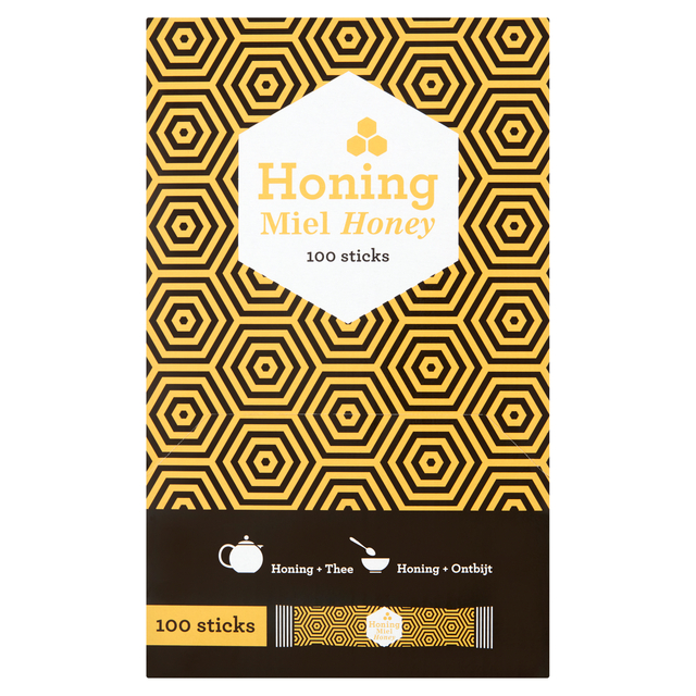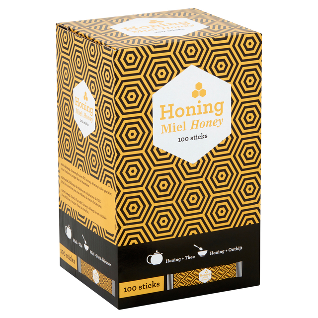 * De Van Oordt Honing is verpakt in een praktische stick. Honing voor in thee, yoghurt, ontbijtgranen en op brood. * Makkelijk en hygiënisch te serveren. Eén stick bevat 8g honing. * Leverbaar in een dispenserdoos à 100 stuks. * Probeer eens ook de andere producten in het assortiment.