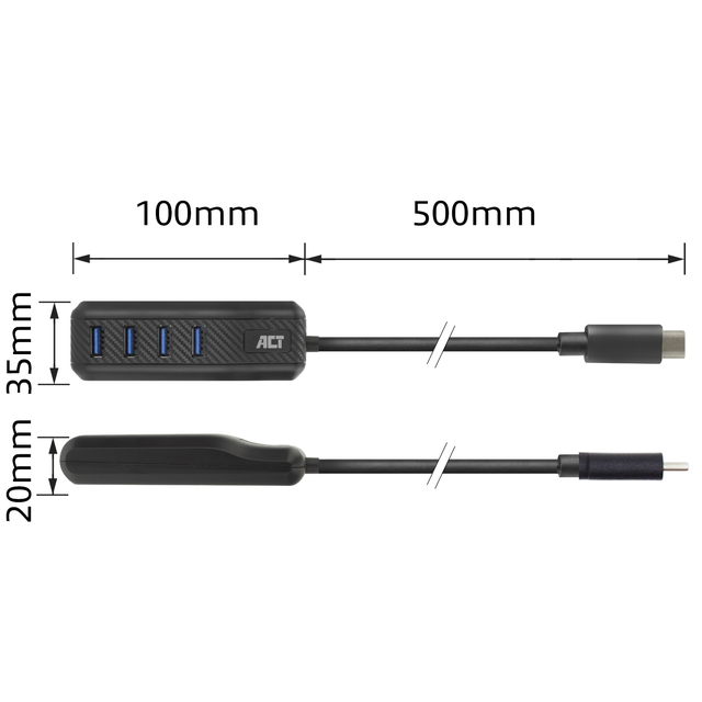 Hub ACT USB-C 3.0 4 poorts USB-A
