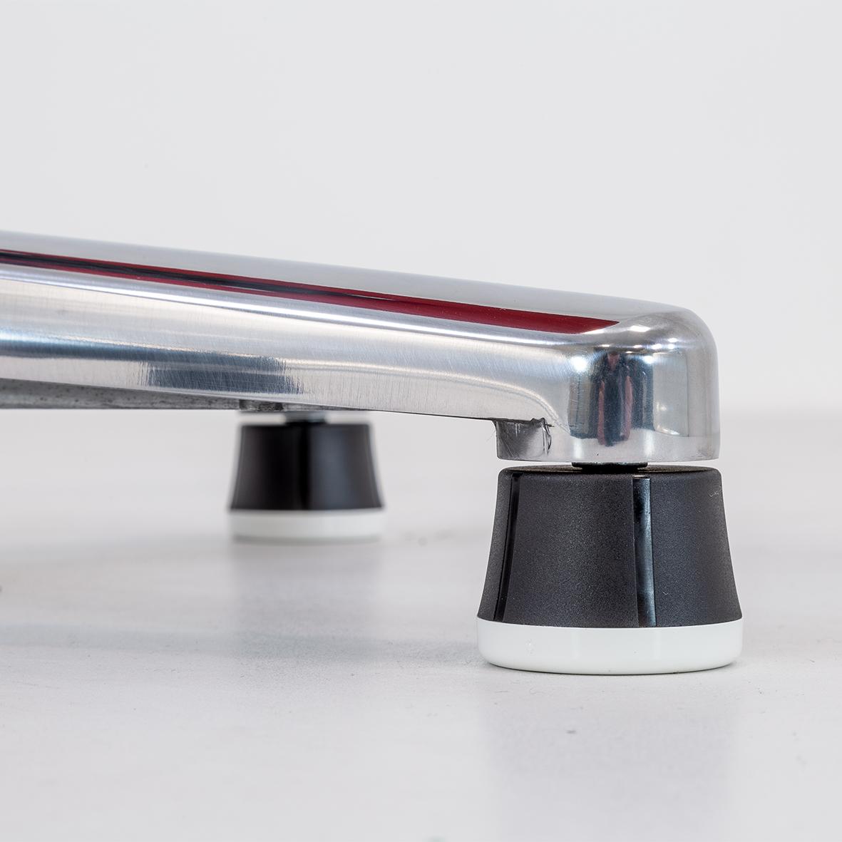 Bureaustoel met ergonomisch gevormde zitschaal van beukenmultiplex, blank gelakt, zonder handgreepgat. Het glanzend gepolijste aluminium onderstel heeft kunststof voetjes, viltglijders of wieltjes zijn optioneel verkrijgbaar. Afhankelijk van het toepassingsgebied is deze bureaustoel in 2 verschillende zithoogtebereiken te bestellen.
