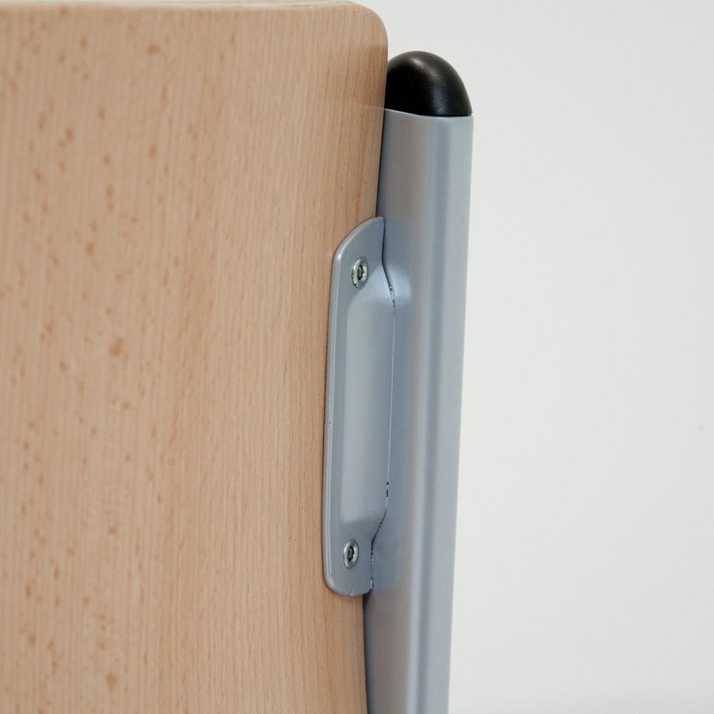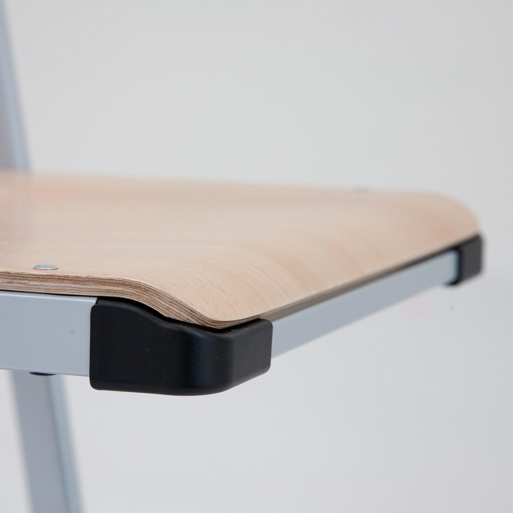 leerlingstoel met handmatige hoogteverstelling op rooster voor basis- en middelbare school. De flexibiliteit van de zithoogteverstelling garandeert ergonomisch zitten volgens DIN in alle leeftijdsgroepen. De zitting en rugleuning zijn natuurlijk gelakt en gemakkelijk schoon te maken. Het stabiele, gelaste, in hoogte verstelbare frame van platovale stalen buis staat garant voor jarenlang intensief gebruik in de klas. Kies uit een groot aantal uitrustingsopties de juiste modelvariant voor uw toepassing.