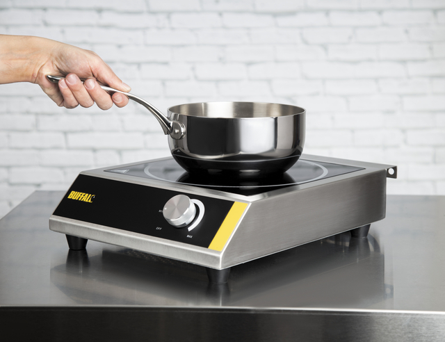 * Bespaar tijd en gas met de krachtige en efficiënte Buffalo 3000W inductiekookplaat. De kookplaat is met zijn sterke RVS constructie bij uitstek toegerust op gebruik met zware inductiepannen. Levert onmiddelijk warmte en met de eenvoudige draaiknop is het vermogen in 26 trappen instelbaar. Door gebruik te maken van inductietechnologie wordt tot wel 90% van de energie direct in de pan geleid, zodat er veel minder energie verloren gaat aan de atmosfeer. Dit verlaagt niet alleen de gebruikskosten, maar ook tot een tijdbesparing bij het koken en meer comfort in de keuken. * Afmetingen: 100x330x430mm. * 230V. * 2 jaar garantie. * Gewicht: 5,6 kg.