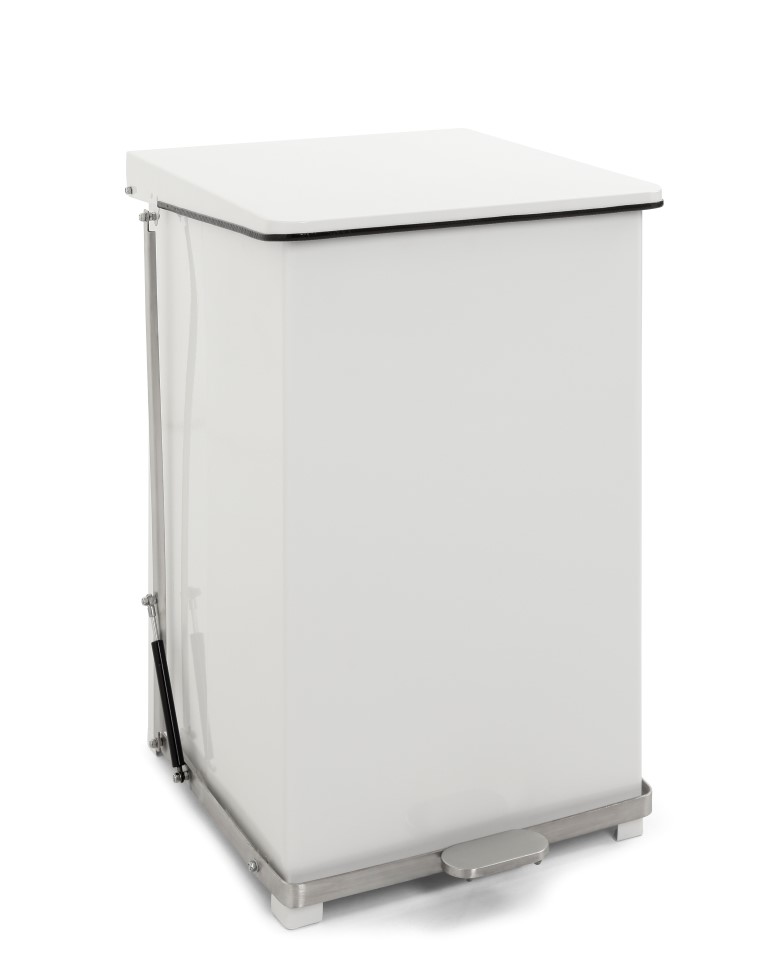Robuuste pedaalemmer voor professioneel en industrieel gebruik. Voorzien van gedempt deksel en zakhouder. De pedaalemmer staat op pootjes en is conform HACCP richtlijnen. Stalen pedaalemmer met langzaam sluitend deksel. Gepoedercoat wit. Inclusief zakhouder beugels. Afmetingen 78x53x53cm Hxbxl