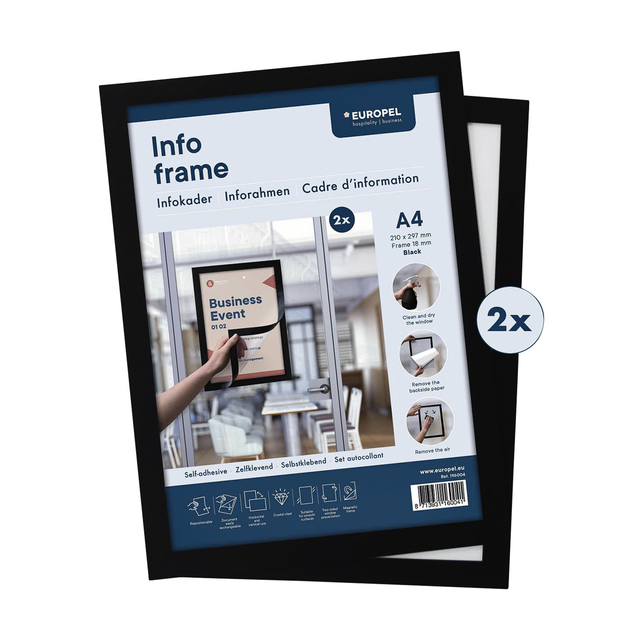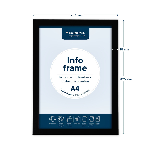 Eigenschappen "Infokader Europel zelfklevend A4 zwart"