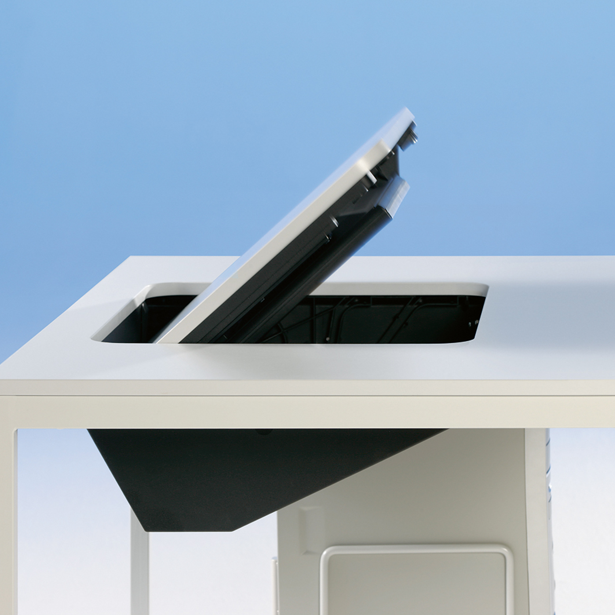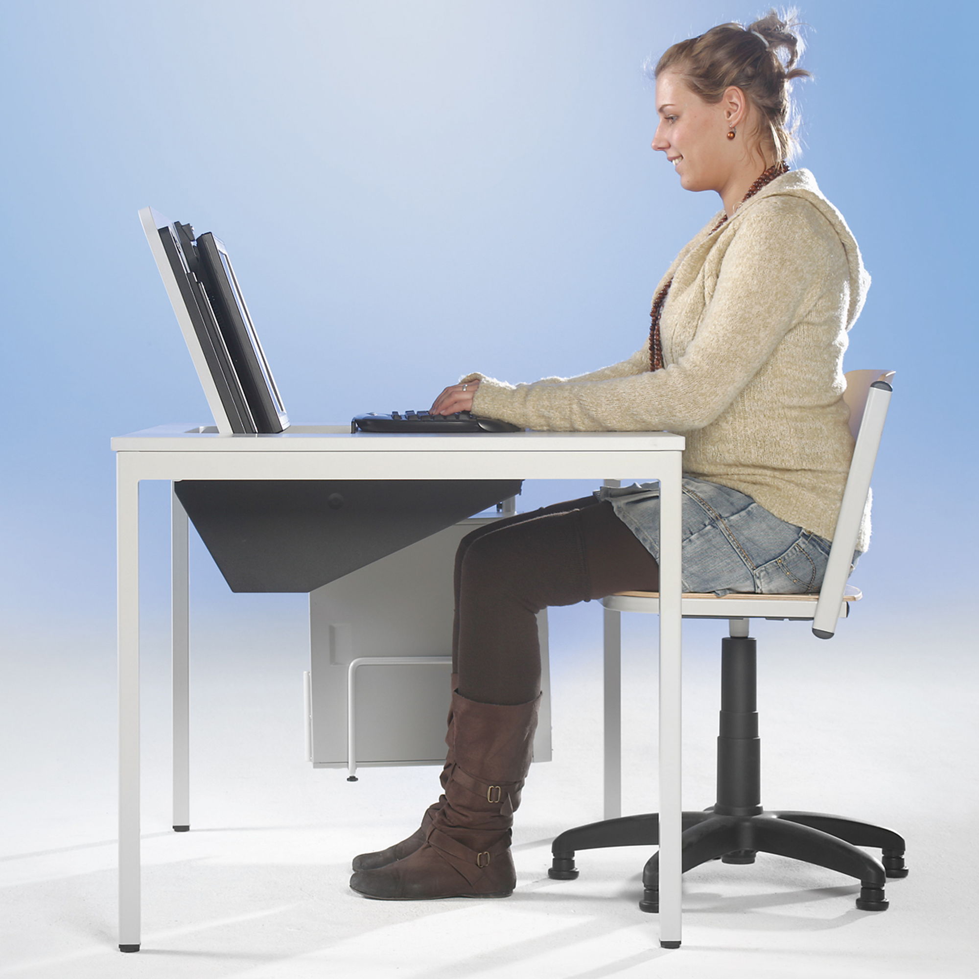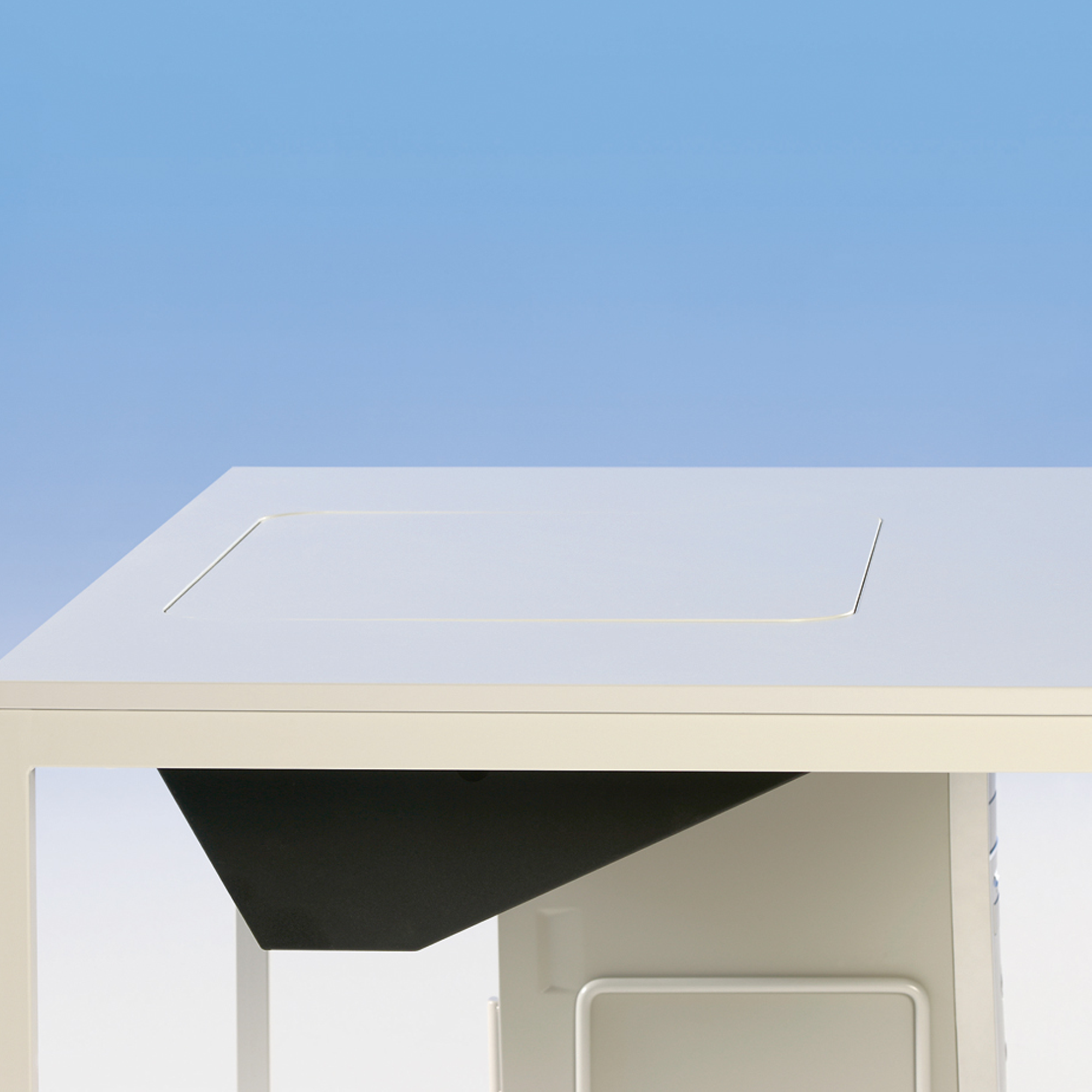 Afsluitbaar, robuust, duurzaam, praktisch - het is magisch! De computertafel biedt plaats aan flatscreen monitoren tot 19" in de uitschuifbare klep. Monitor, toetsenbord en muis zijn inschuifbaar. Zo hoef je niet meer te herschikken en creëer je in een handomdraai ruimte op je bureau. De stabiele 4-poot stalen buisframe met 30x30 mm profiel en de 19 mm dikke melaminehars gecoate spaanplaat met ABS randen bieden een hoogwaardige werkplek. De tafel heeft een ingebouwde klep die kan worden afgesloten. kabeluitgang voor monitor, toetsenbord, muis en stroomkabels: 60cm x 50cm, toetsenbordlade: 60cm x 24cm