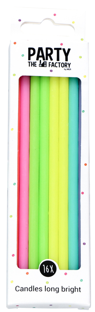 Kaarsjes Haza long bright 15cm 16 stuks assorti