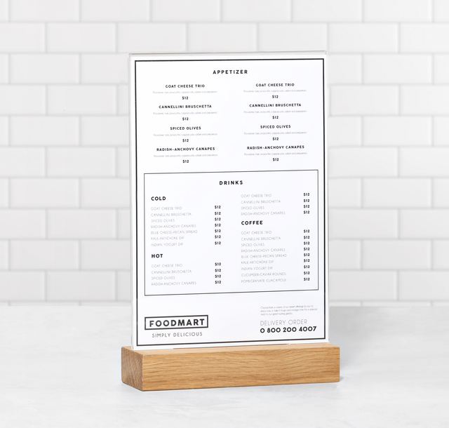 * Kaarthouder Europel voor een representatieve presentatie van folders en prijskaarten. * Met voet uit stevig en duurzaam FSC gecertificeerde eikenhout. * Hoogwaardig glashelder acrylaat. * Geschikt voor papierformaat A5 staand. * Tweezijdige presentatie.