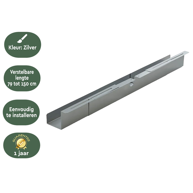 * Wil jij direct meer bewegingsvrijheid op je werkplek en daarnaast ook een veilige en strakke (thuis)werkomgeving creëren? De BRASQ Verstelbare Kabelgoot biedt direct een praktische en ruimtebesparende oplossing op de werkplek. Deze esthetische oplossing helpt je bij een opgeruimde werkplek (clean desk) en zorgt voor meer bewegingsvrijheid. Doordat de kabels en snoeren niet meer over de grond liggen, is de werkplek ook beter schoon te maken en houden. Het biedt ook een praktische oplossing voor hoog-laag/zit-sta bureaus en de perfecte manier om de bekabeling netjes weg te werken. De kabelgoot heeft een opening aan de achterzijde waar de kabels makkelijk doorheen te geleiden zijn. De kabelgoot is 11,5 cm diep, daarmee is het mogelijk meerdere kabels/stekkerblokken weg te leggen. Daarnaast is een open kabelgoot enorm praktisch zodat je altijd nog makkelijk bij het schakelmateriaal kunt én voldoende ruimte betekent ook voldoende ventilatie rondom de elektrische apparatuur. * De universele kabelgoot, die slechts 2,3 kg weegt, wordt eenvoudig onder het bureaublad bevestigd, waardoor alle snoeren netjes weggewerkt zijn. De kabelgoot is gemaakt van hoogwaardig staal waardoor deze een sterk karakter heeft. Hierdoor kunnen ze een goed gewicht dragen van 10KG. De stalen goot zorgt er ook voor dat kabels niet oververhit kunnen raken. Met de directe ruimtebesparing kun je op een comfortabele manier aan het bureau zitten en creëer je een veilige en opgeruimde werkplek. Door zijn verstelbare eigenschap kun je de kabelgoot verlengen van 75-150cm. Deze is universeel te plaatsen onder ieder bureau. * De montage van de kabelgoot is zeer eenvoudig. Dit artikel wordt meegeleverd met bijbehorend bevestigingsmateriaal. * Specificaties: Afmeting product: 79-150 x 11,5 x 12 cm * Verstelbaar: 79 tot 150cm * Gewicht product: 2,3 KG * Draagvermogen: 10 KG * Materiaal: Staal * Type montage: Onder het bureaublad * Minimale bureaubladdikte: 20 mm * Bevestigingsmateriaal: Inbegrepen * Handleiding: Inbegrepen *
