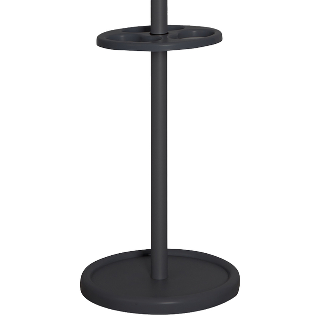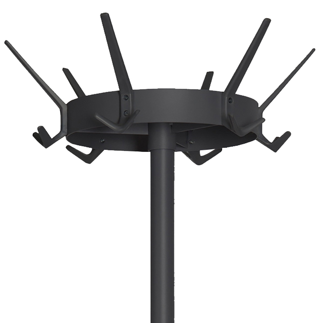 * De Kapstok Londen van BRASQ zou je een kroon op je werk kunnen noemen. Deze staande kapstok beschikt over 8 stevige haken en biedt in zijn totaliteit plaats voor 16 jassen. Als het weer een beetje tegen zit kan je ook je paraplu kwijt in de daarvoor geschikte houder. Deze luxe kapstok is volledig in het zwart uitgevoerd en is uitermate geschikt voor alle werkruimten. De Londen kapstok is gemaakt van hoogwaardig staal en is daarnaast afgewerkt met een zwarte poedercoating. Door de poedercoating is de kapstok kraswerend en gaat de kapstok extra lang mee zonder te verkleuren. Alle BRASQ kapstokken beschikken over een verzwaarde voet met een kunststof behuizing wat zorgt voor een solide staande kapstok. De BRASQ kapstok Londen wordt als een bouwpakket geleverd. In slechts een paar eenvoudige stappen staat deze kapstok in elkaar. * De handleiding wordt uiteraard meegeleverd.