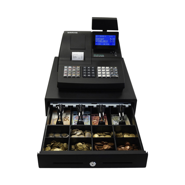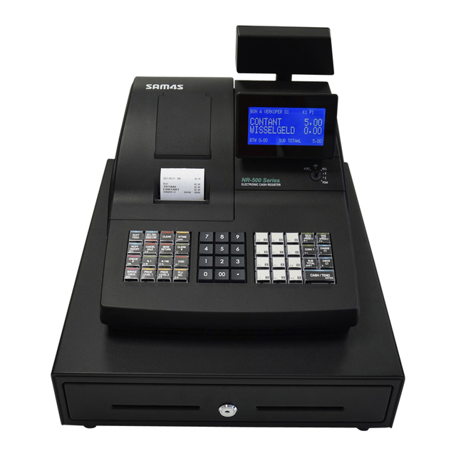 * Traditionele kassa met opstaand toetsenbord. * Ideaal voor alle soorten retailactiviteiten, met of zonder barcodescanning. * Voorzien van 12 hoofdgroepen. * 57mm thermische bonprinter. * Alles in één oogopslag in het zicht door het duidelijke 8-regelig LCD-display. * Onbekende artikelen met barcode kunnen direct tijdens het registreren worden geprogrammeerd. * Kan gekoppeld worden aan de reeds lang bestaande gecertificeerde CCV terminals. * Wordt geleverd inclusief geldlade met 4 papiervakken en 8 muntvakken. * Voor hulp bij het programmeren is een programmeerpakket beschikbaar, de kosten hiervan zijn €75. * Wil je hier gebruik van maken, neem dan voordat je de kassa aanschaft contact op met jouw kantoorvakhandelaar. * Zij helpen je graag verder.
