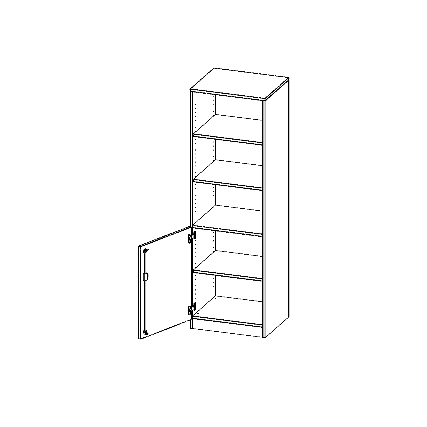Kast, 5 ordnerhoogtes, deur onder (2 ordnerniveau), 3 open vakken boven - Serie evo180