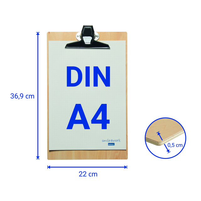 Eigenschappen "Klembord MAUL Tilia A4 staand hout 0.5 cm"