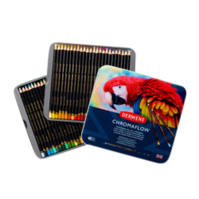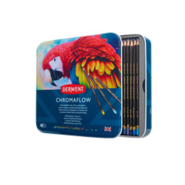 * Creëer in het oog springende kunstwerken met deze Derwent Chromaflow kleurpotloden in blik. * Deze kleurpotloden zijn speciaal ontworpen voor kunstenaars en professionals en beschikken over klassieke, levendige, mengbare kleuren met een gelijkmatige laydown. * Derwent Chromaflow potloden zijn samengesteld met rijk pigment, om altijd gewaagde, levendige kleuren te creëren. * De potloden kunnen druk weerstaan wanneer ze worden geslepen of in gebruik zijn. * Geniet elke keer weer van constante, betrouwbare kwaliteit. * De potloden zijn geschikt voor alle stijlen en technieken, eenvoudig mengen en laagjes aanbrengen dankzij de gladde textuur. * De potloden hebben een sterke kern van 3,5mm. * Kleurenpalet: Bevat Sun Yellow, Amber Gold, Golden Sun, Flame, Scarlet, Strawberry, Salmon, Blush Pink, Magenta, Lilac, Violet, Denim, Blue, Light Blue, Turquoise Green, Basil, Foliage, Grass Green, Burnt Sienna, Raisin, Natural Brown, Platinum, Black, White en meer.