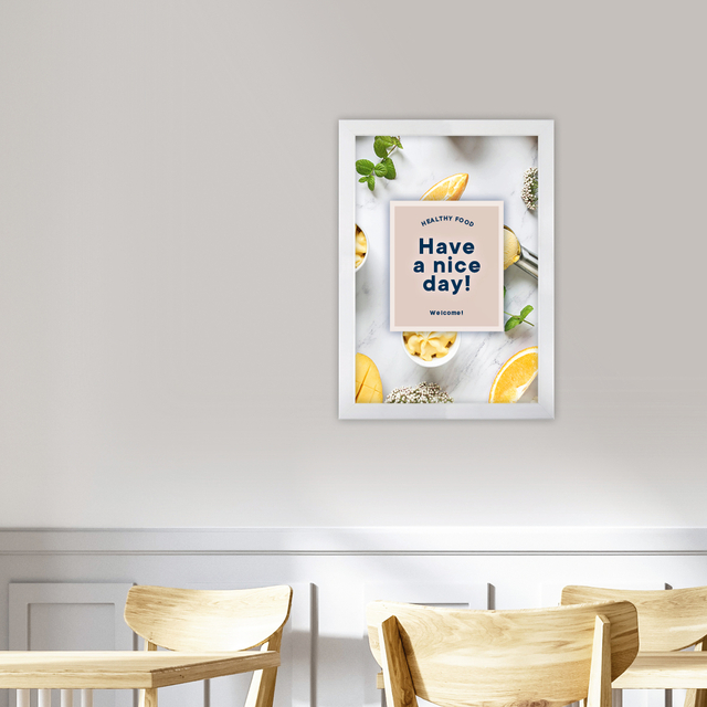 * Ontspiegelde voorzetfolie: De heldere, transparante ontspiegelde voorzetfolie beschermt je poster tegen vuil en vocht, terwijl het zorgt voor een heldere en scherpe weergave van je boodschap.