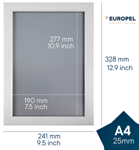 Geef je posters een stijlvol podium met de veelzijdige Europel Premium aluminium kliklijst. Deze hoogwaardige kliklijst, ook bekend als posterlijst of wissellijst, biedt een snelle, eenvoudige en representatieve presentatie van je A4 posters.