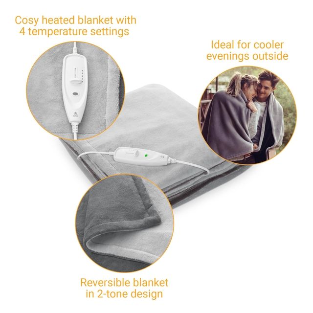 * Met de behaaglijke HDW-verwarmingsdeken van medisana kunt u uw lichaam gericht en zacht verwarmen en ontspannen. De toepassing bevordert het welzijn na een inspannende dag. De "Turbo Heat"-functie met 120 watt genereert snel een behaaglijke warmte. De omkeerbare deken in tweekleurendesign kan met het praktische bedieningselement in 4 standen op de gewenste temperatuur worden ingesteld. * Dankzij het royale "XL-formaat" van 1,80 x 1,30 is de HDW elektrische deken ideaal voor behaaglijke warmte. De elektrische deken werd door het tijdschrift "Haus & Garten Test" uitgeroepen tot testwinnaar met de beoordeling "zeer goed". De beoordeling was: "Behaaglijke warmte in zijn mooiste vorm". * De Medisana XL knuffeldoek HDW scoort punten met zijn moderne design in een tweekleurige omkeerbare look. Het pluizige, zachte buitenmateriaal is wasbaar dankzij het afneembare bedieningspaneel. Voor gezellige uurtjes - vooral in het koude seizoen.