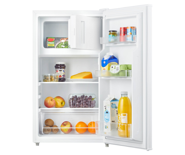 De Tomado TRT4702W is een tafelmodel koelkast met vriesvak met een totale netto inhoud van 80 liter. Dit is voldoende koel- en vriesruimte voor huishoudens van 1 tot 3 personen. Dit zorgt ervoor dat jij al jouw boodschappen er keurig in kwijt kan. De koelkast is voorzien van een vriesvak, 2 glazen draagplateaus, 1 groentelade en 3 vakken in de deur. Zodra je de deur van de koelkast opent, springt de binnenverlichting aan zodat je goed zicht hebt. Dankzij het lage geluidsniveau van 39 dB hoor je nauwelijks dat hij aanstaat!