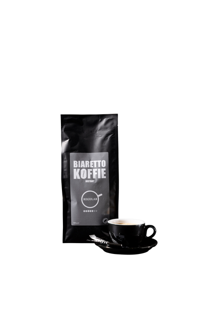 * Biaretto instant koffie is oploskoffie. * Dit is geen gemalen koffie zoals bijvoorbeeld fresh brew. * Geschikt voor koffie instantmachines. * Voor de Biaretto instant regular is gebruik gemaakt van alleen de beste robusta koffie. Met een medium branding ontstaat er een pittige volle koffie met chocoladetonen. Ideaal voor espresso’s en cappuccino’s. * Geschikt voor koffiemachines. * Geniet van Biaretto koffie op het werk en haal het beste uit je werkdag. Kenmerken: * Type: instant, gevriesdroogd. * Soort: robusta melange * Brandingsniveau: medium gebrand * Milieukeurmerken: Rainforest Alliance en Groenbalans * Ervaring: pittige koffie met chocoladetonen.