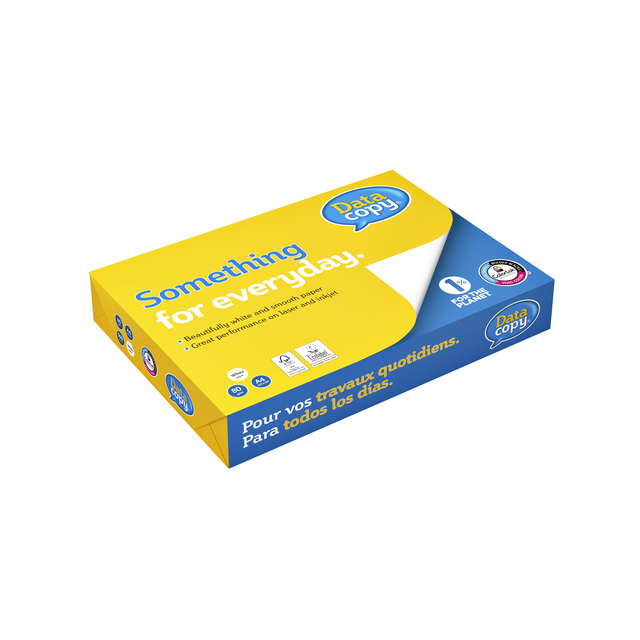 * Datacopy is stralend wit papier met een glad oppervlak, ideaal voor het printen van teksten en afbeeldingen. * Geschikt voor inkjet, kopieer en laserprint doeleinden. * FSC-gecertificeerd en voorzien van EU Ecolabel. * Voldoet aan de houdbaarheidsnorm ISO9706. * Voorzien van ColorLok technologie. * Dit papier heeft een witheid van CIE170.