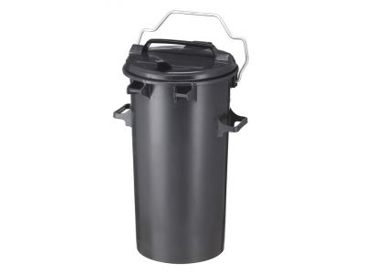 Kunststof vuilnisemmer met deksel en beugel. Kunststof prullenbak met een inhoud van 50 liter voor langdurig en professioneel gebruik. Deze afvalemmer is gemaakt van speciaal ontwikkelde kunststof waarbij de kunststofdelen in spuitgietprocede worden gemaakt. Het emmer sluit af met een corrosiebestendige metalen draaghengsel die tevens gebruikt kan worden om het deksel te vergrendelen. Naast dit draaghengsel heeft de donkergrijze afvalemmer ook 2 handige handgrepen. De afvalemmer is bestand tegen alle weersomstandigheden zoals hitte en vorst en kan langdurig buiten staan. Rotting en vele chemische stoffen hebben geen effect op deze prullenbak. De kunststof is bewerkt met UV stabilisatoren wat veroudering door UV straling tegen gaat en waarbij de kleur intact blijft.