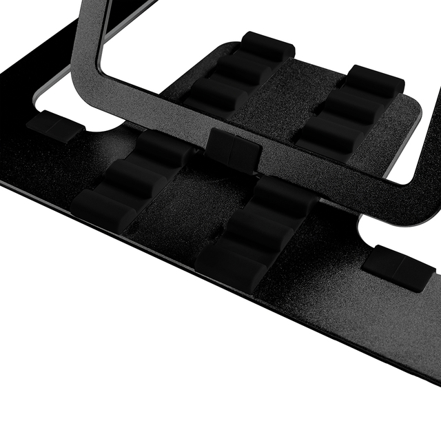 * Dit is een universele notebook standaard waarmee u uw notebook in een ergonomische positie plaatst. *Gemakkelijk verstelbaar in 5 standen ideaal voor de juiste kijkhouding ten opzicht van de notebook. * Door zijn design eenvoudig in te klappen, licht gewicht en mobiel. * Het unieke design, gemaakt van staal met poedercoat afwerking en siliconen anti-slip pads, laat warme lucht eenvoudig wegstromen waardoor oververhitting van de notebook wordt voorkomen. * Hierdoor blijft uw notebook snel en betrouwbaar.