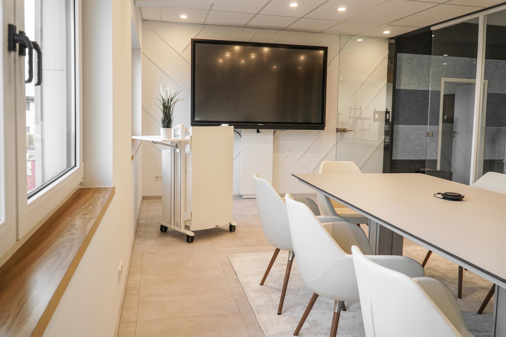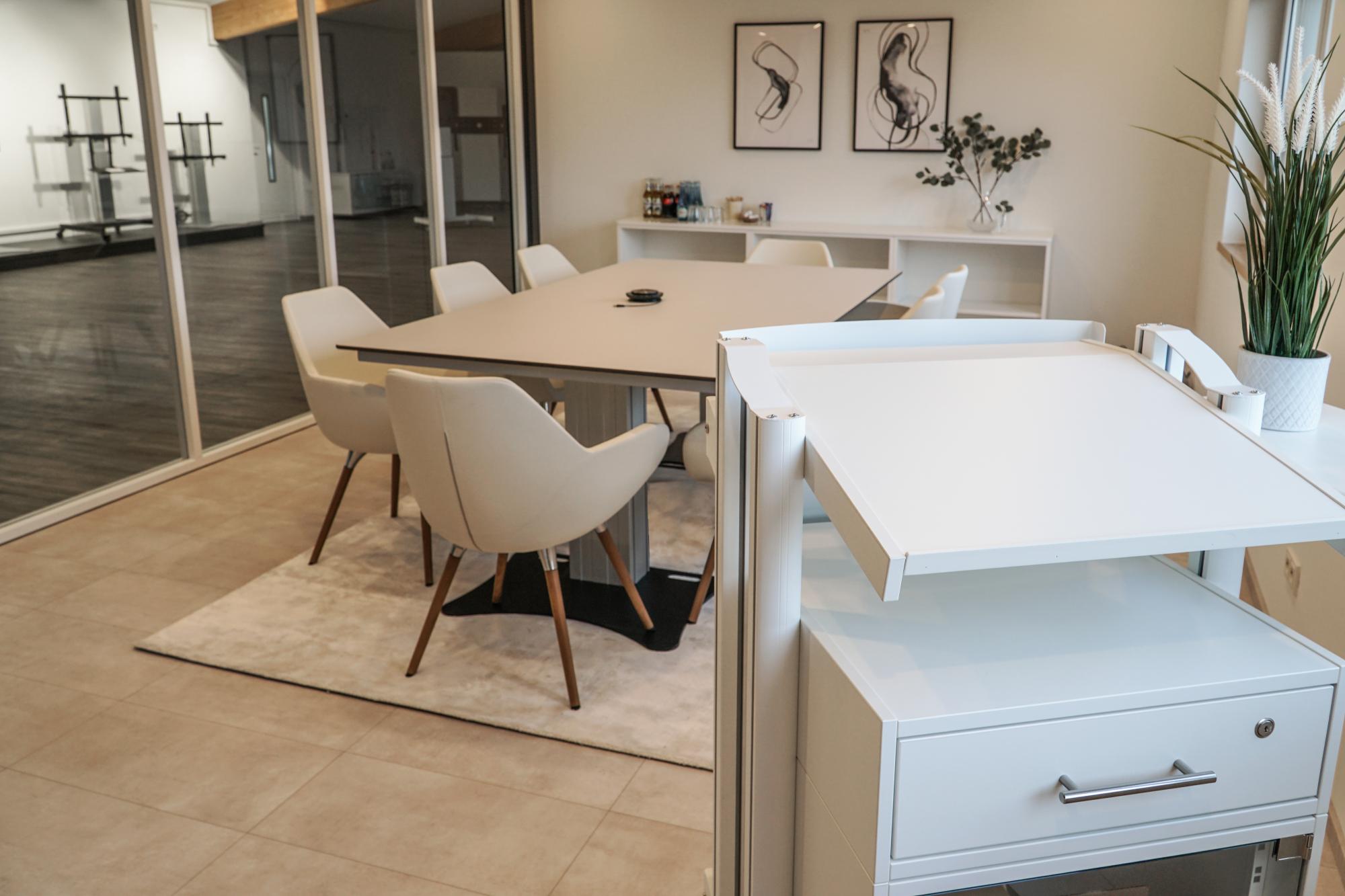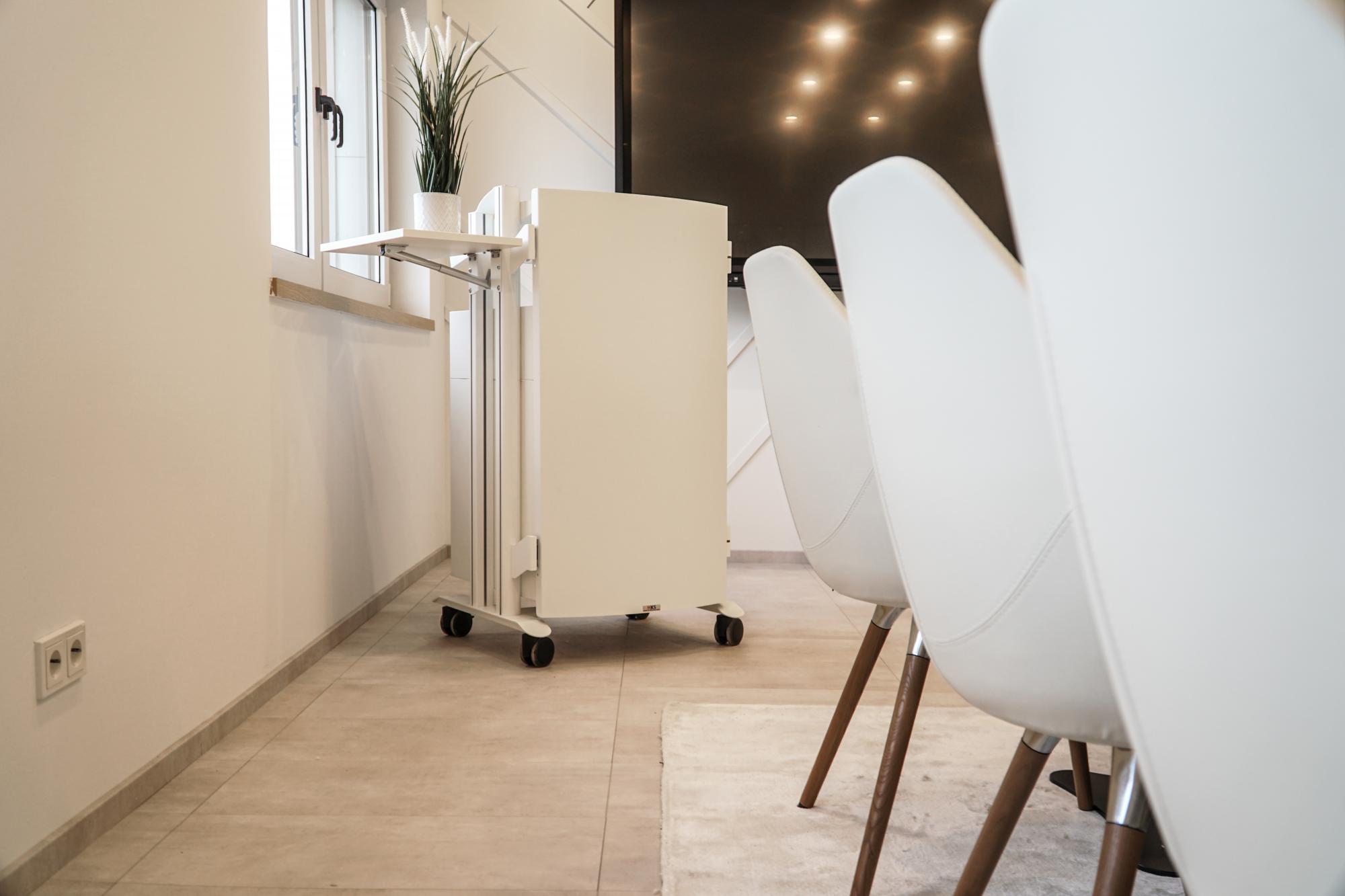 De Lectern-V is een meubelserie die met een 19"-module (11U) ideaal is voor het onderbrengen van mediatechniek. De 19"-module heeft een afsluitbare glazen deur voor de veiligheid van de technologie. De lessenaar-V bestaat uit een hoog onderstel, een lessenaarmodule met beschermstrip en een 19" module. Met individuele optioneel verkrijgbare modules heeft u de mogelijkheid om een individuele oplossing samen te stellen die precies is afgestemd op uw eisen. Het uiterlijk van de katheder V kan qua kleur individueel worden aangepast. De afbeelding toont een op maat gemaakt product in platinawit decor met een speciale laklaag in RAL 9016 verkeerswit. Wij creëren graag uw individuele oplossing voor u.
