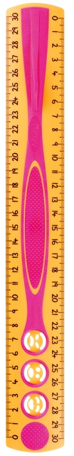 * Liniaal voor kinderen. * Zeer goed leesbaar door grote getallen. * Van anti-slip materiaal voor een perfecte stabiliteit. * Maatverdeling aan 2 zijden. * Voorzien van een handige grip. * 3-kantige vorm voor een optimale grip. * Met 3 smiley's om je humeur weer te geven. * Milieuvriendelijk: gemaakt van 63% gerecycled materiaal.