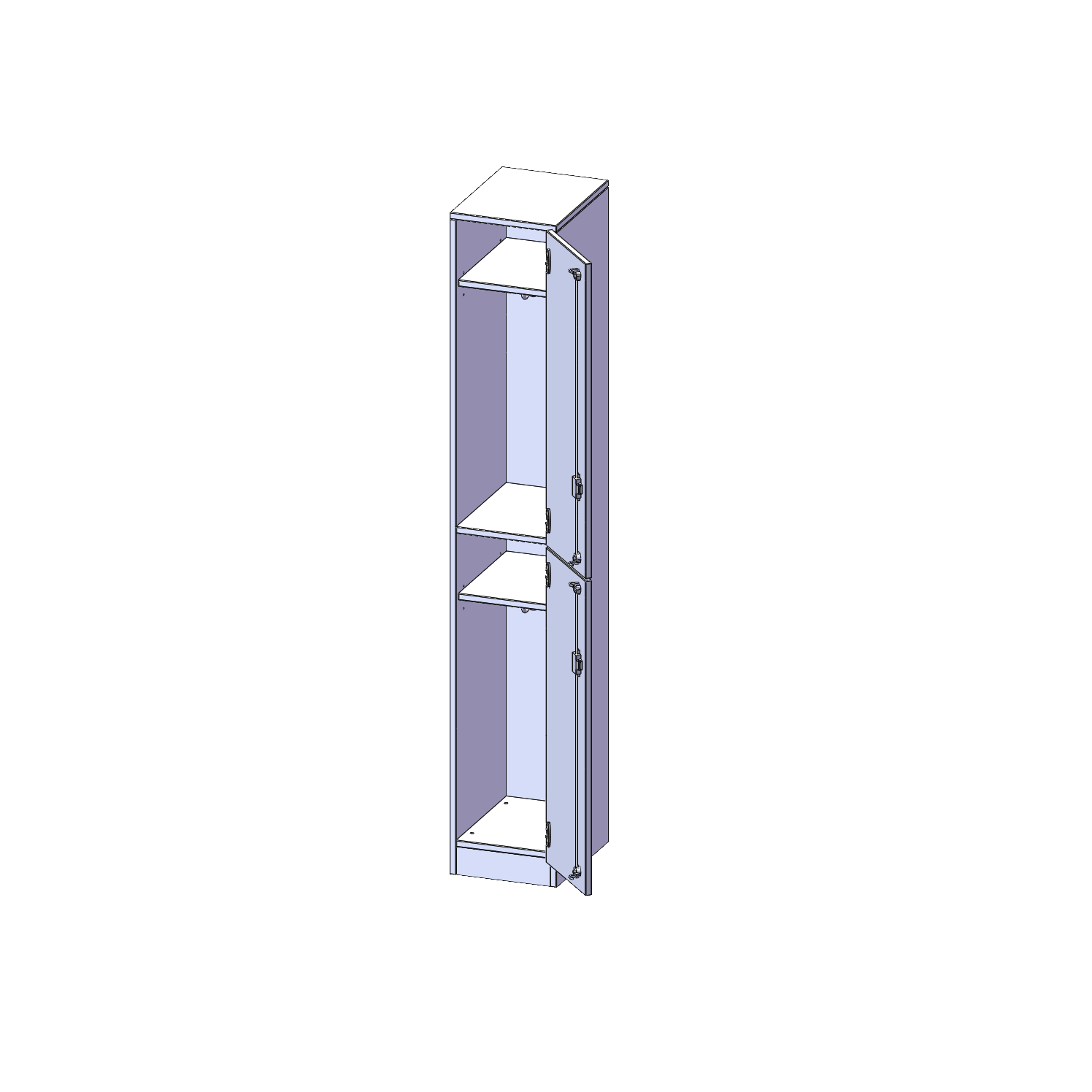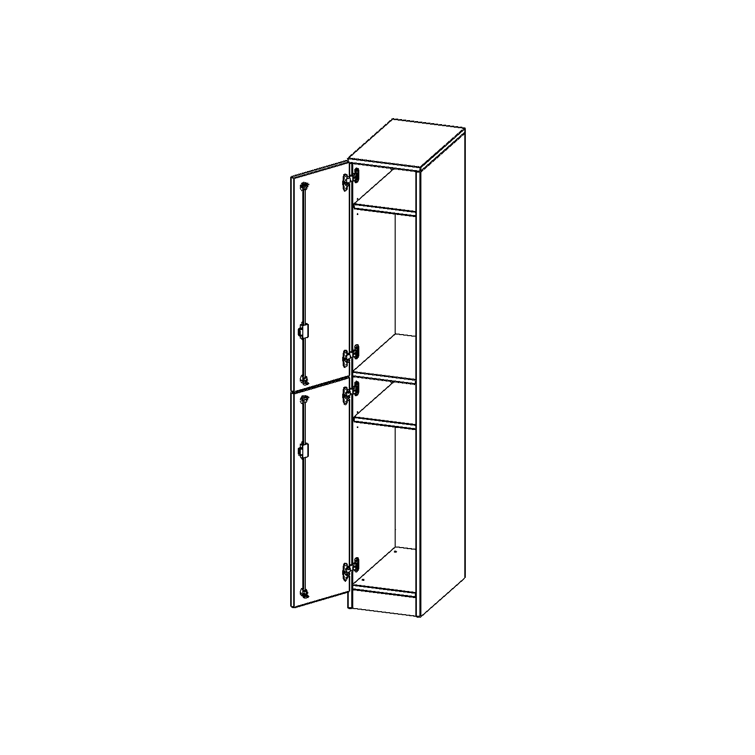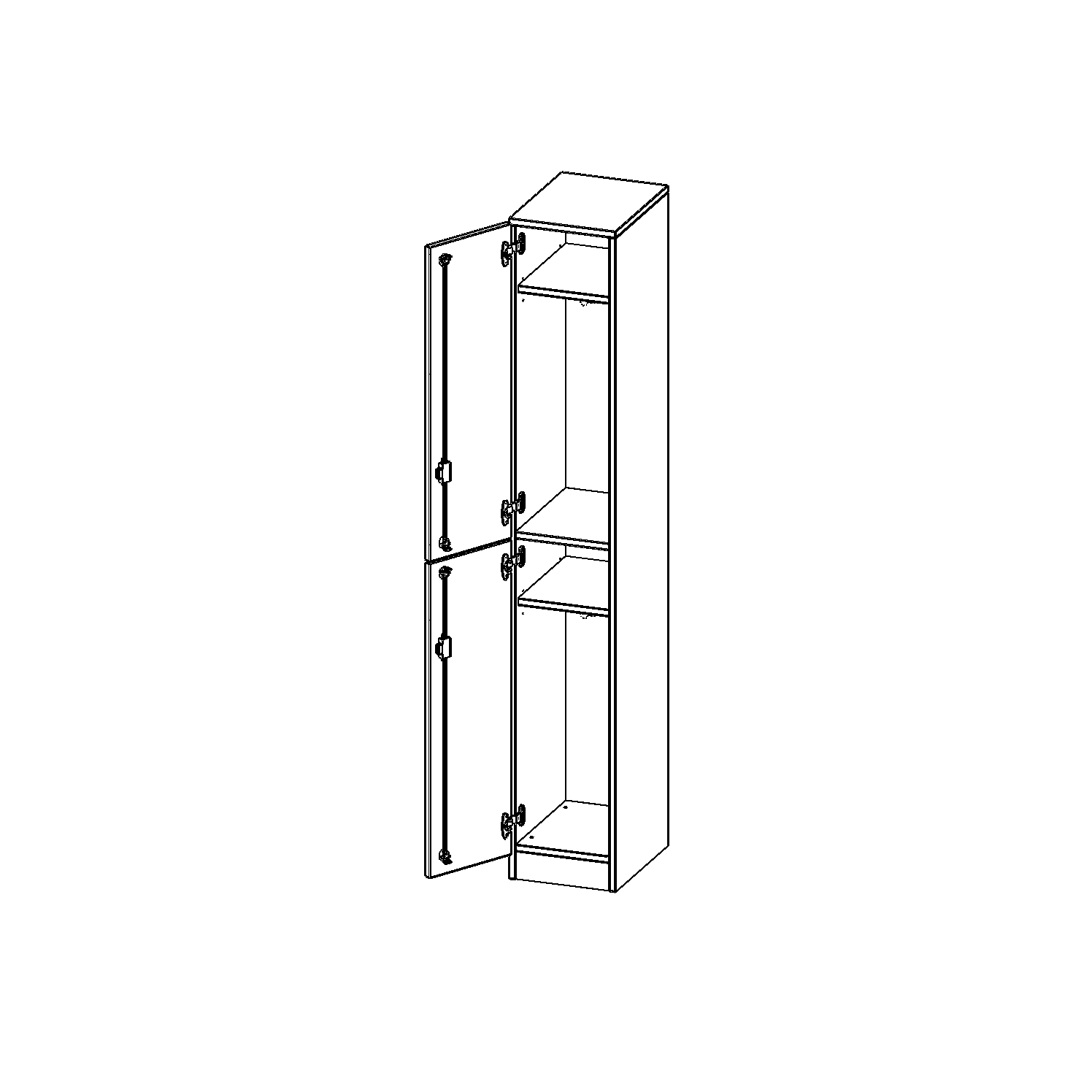 De evo180 lockers in verschillende variaties vormen een belangrijk onderdeel van ons evo180 wandkasten programma. De achterwand is ontworpen als zichtbare achterwand, dus alle evo180 losse kasten of bovenkasten zijn ook geschikt als room dividers. Binnenin is er een plank voor petten of hoeden, drievoudige haken. Ideaal als garderobe-unit voor meerdere leerling in combinatie met andere lockers. De deuren zijn afsluitbaar en gaan 270° open. 2 vakken boven elkaar. Alle lockers zijn gemaakt van gemelamineerde E1 fijnspaanplaat, die FSC-gecertificeerd en formaldehydevrij is. We gebruiken bijzonder robuuste 2 mm dikke ABS-randen, die bij hoge temperaturen stevig worden verlijmd. Selecteer het gewenste decor uit ons decorpalet. De legborden zijn verstelbaar in stappen van 32 mm. Onze hoogwaardige plankdragers hebben een "uittrekstop" die voorkomt dat planken met inhoud uit de plank of kast glijden. Configureer uw gewenste locker door uw keuze te maken uit de aangeboden opties.