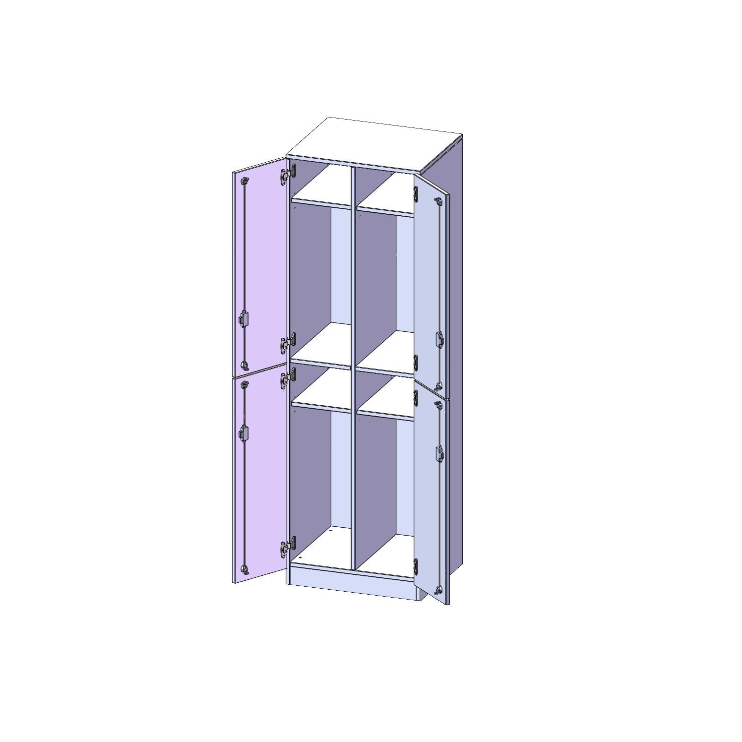 De evo180 lockers in verschillende variaties vormen een belangrijk onderdeel van ons evo180 wandkasten programma. De achterwand is ontworpen als zichtbare achterwand, dus alle evo180 losse kasten of bovenkasten zijn ook geschikt als room dividers. Binnenin is er een plank voor petten of hoeden, drievoudige haken. Ideaal als garderobe-unit voor meerdere leerling in combinatie met andere lockers. De deuren zijn afsluitbaar en gaan 270° open. 2 vakken boven elkaar. Alle lockers zijn gemaakt van gemelamineerde E1 fijnspaanplaat, die FSC-gecertificeerd en formaldehydevrij is. We gebruiken bijzonder robuuste 2 mm dikke ABS-randen, die bij hoge temperaturen stevig worden verlijmd. Selecteer het gewenste decor uit ons decorpalet. De legborden zijn verstelbaar in stappen van 32 mm. Onze hoogwaardige plankdragers hebben een "uittrekstop" die voorkomt dat planken met inhoud uit de plank of kast glijden. Configureer uw gewenste locker door uw keuze te maken uit de aangeboden opties.